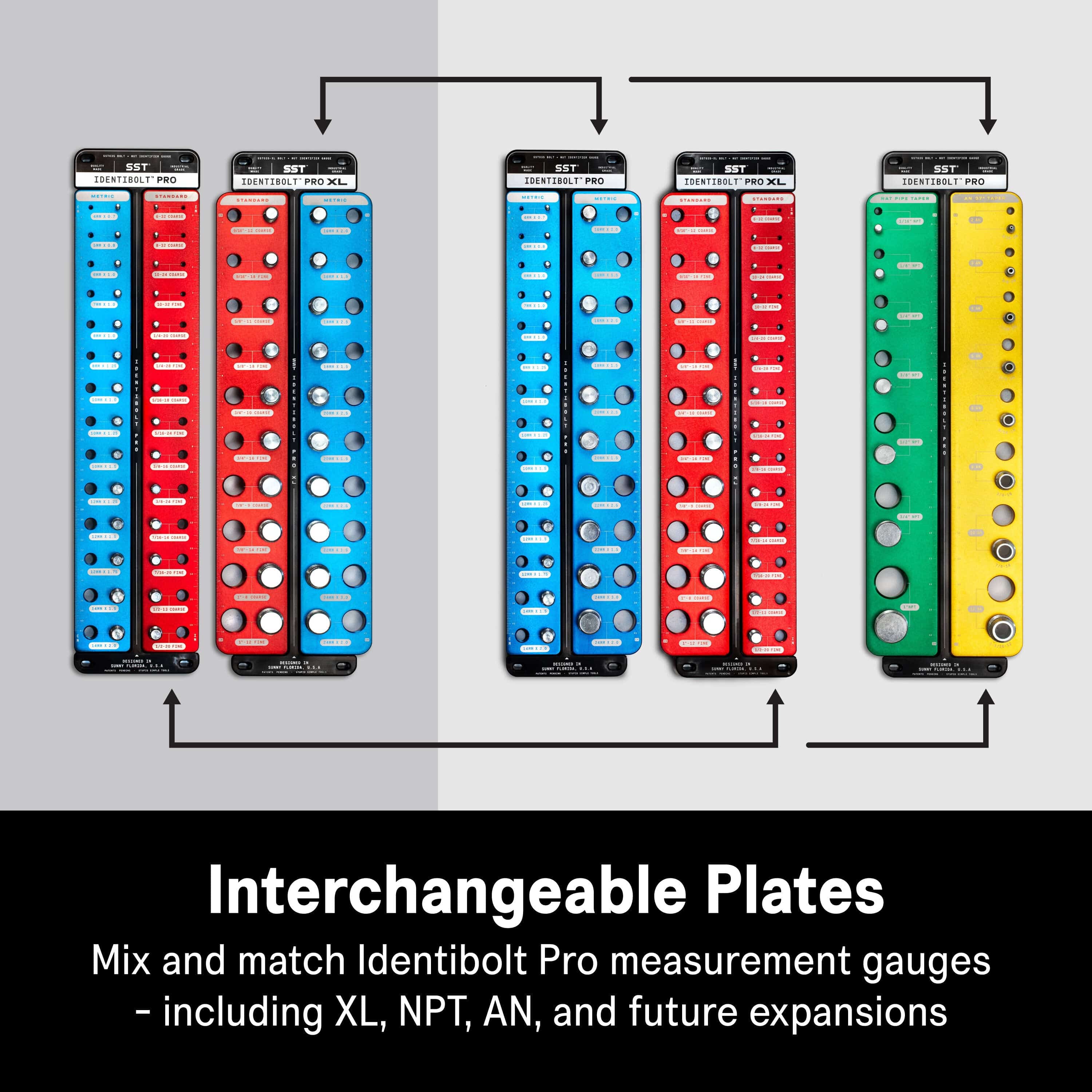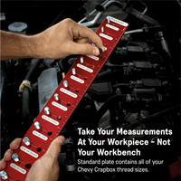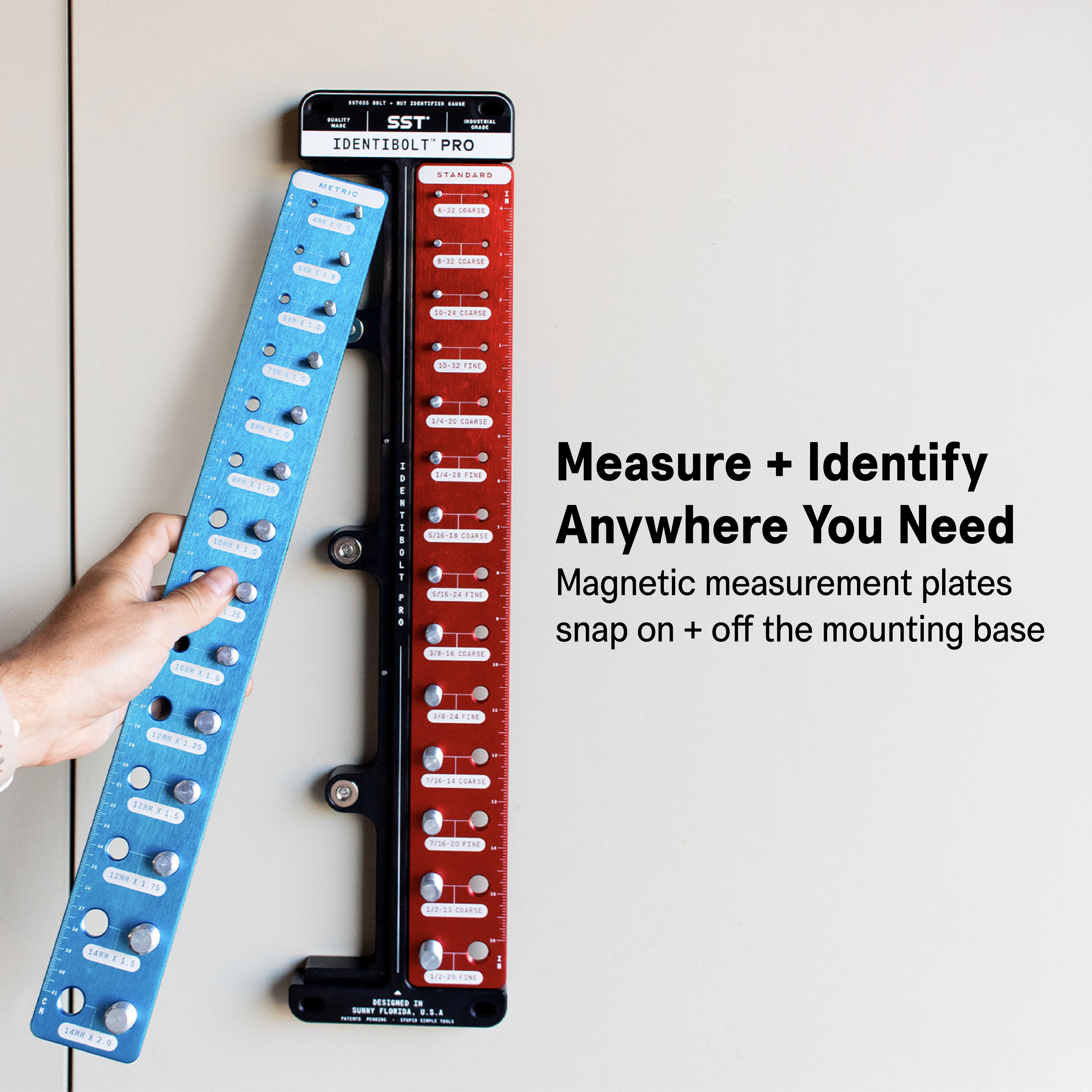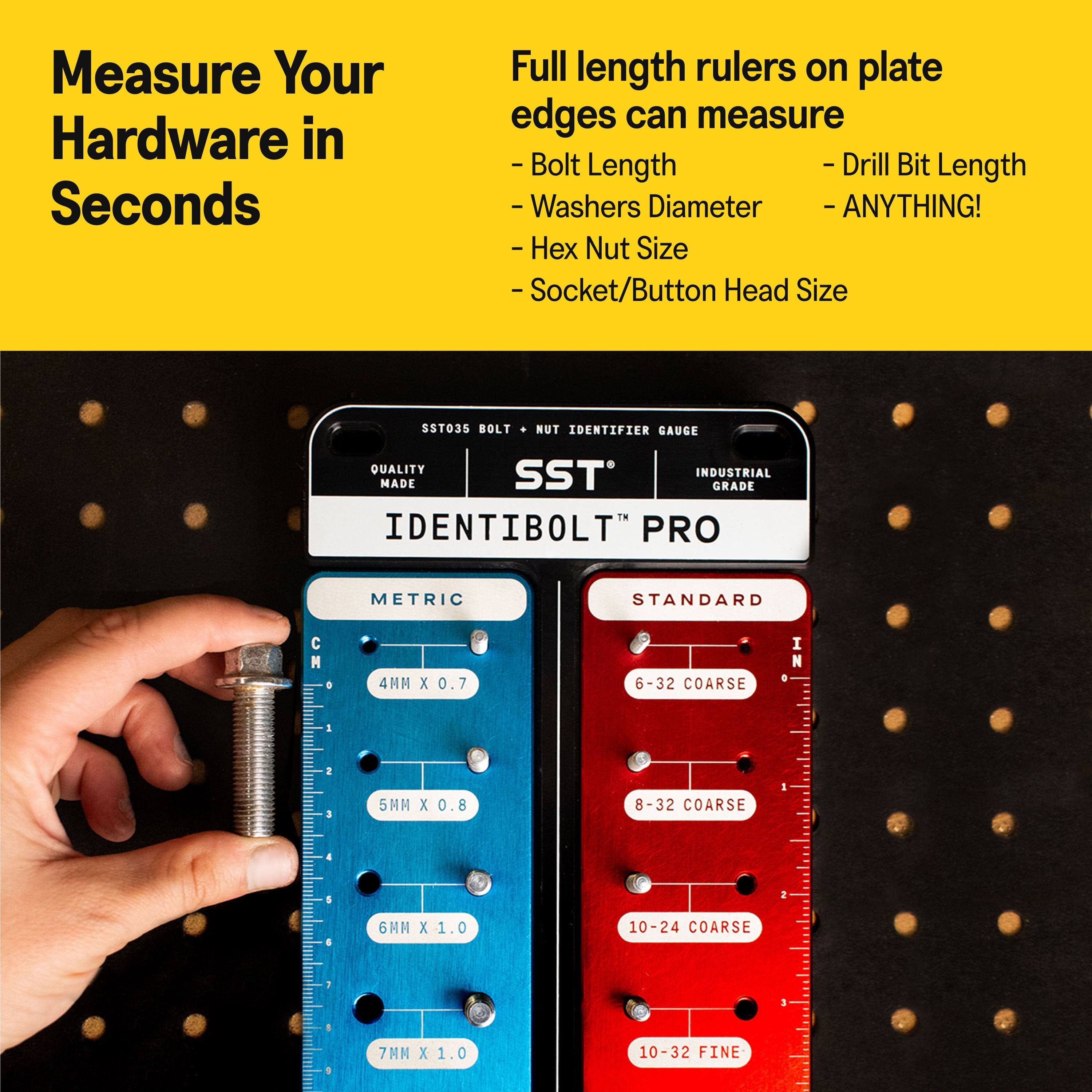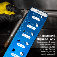 Full length rulers on plate edges can measure bolt length, washer diameter, drill bit length, etc.