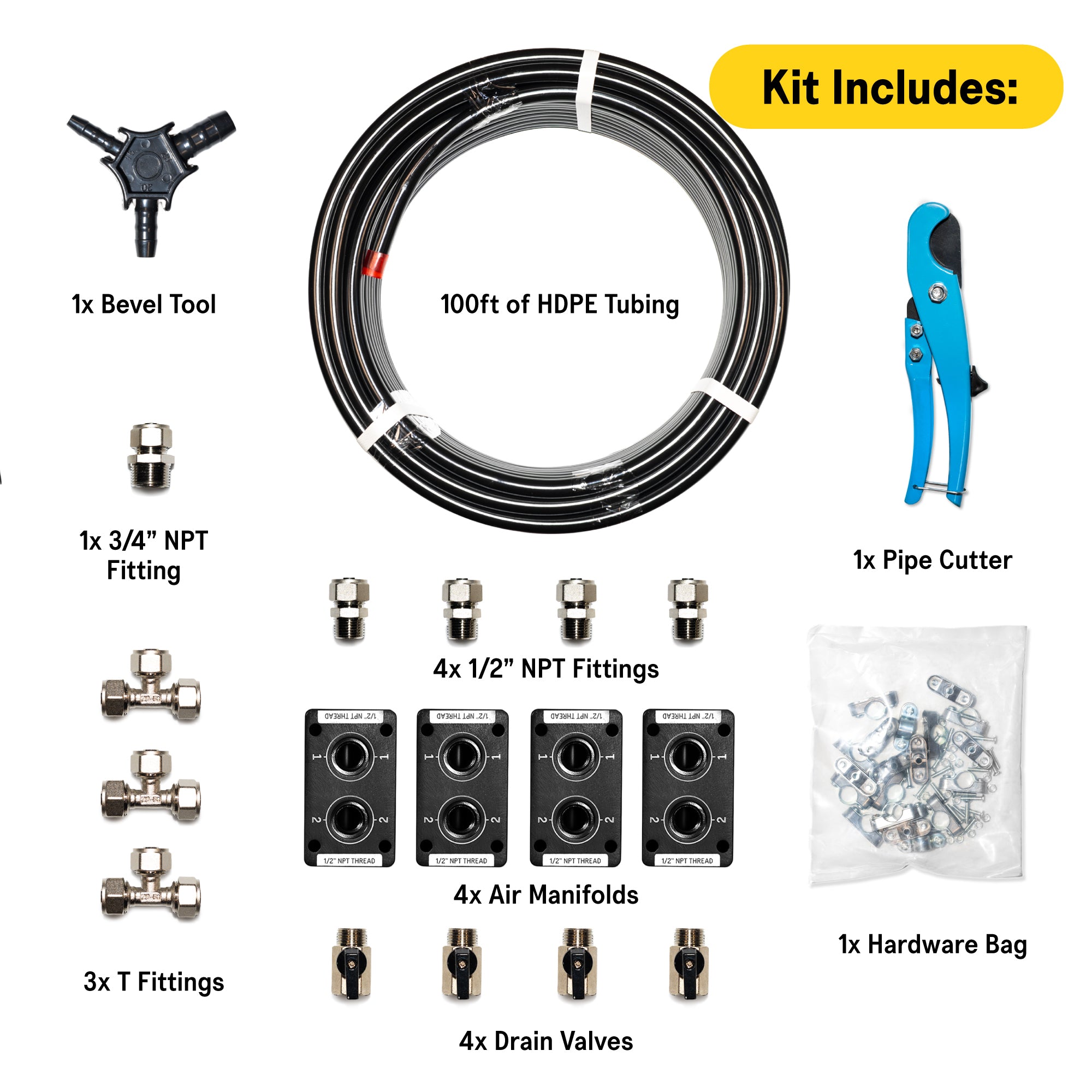 A simple and durable HDPE-ALU hose distribution kit for your garage or workshop!