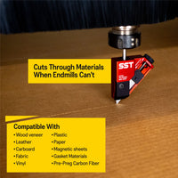 - Cut Through Cardboard, Vinyl, Rubber, Plastic, Paper, Wood Veneer