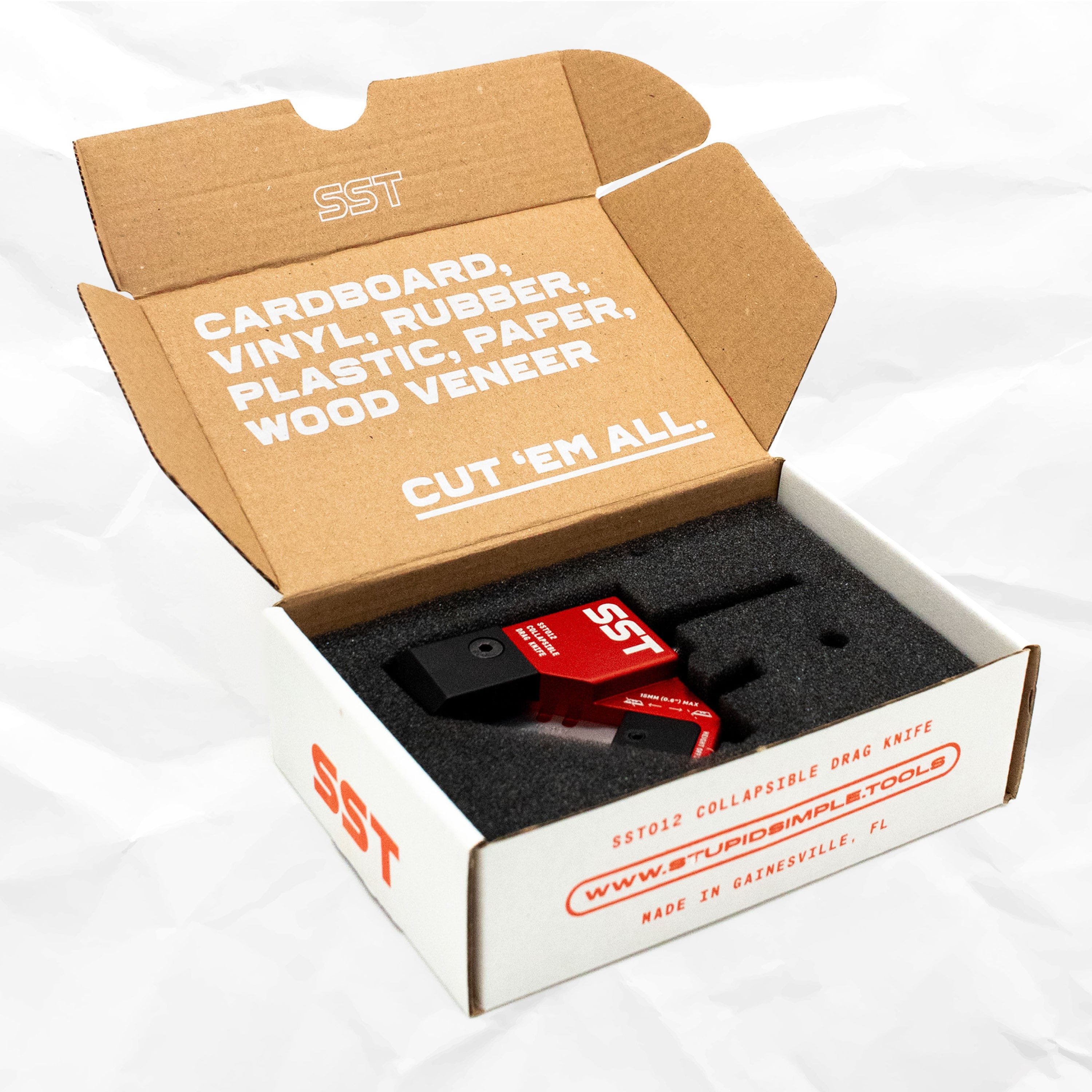 Recently purchased this particular drag knife. I must say that this particular brand is very safe and precise. Unlike other brands, this one has the blade totally concealed with only the cutting edge exposed. And the price was actually cheaper than the competitor. Quality make, sturdy and a precision tool for a simple task.