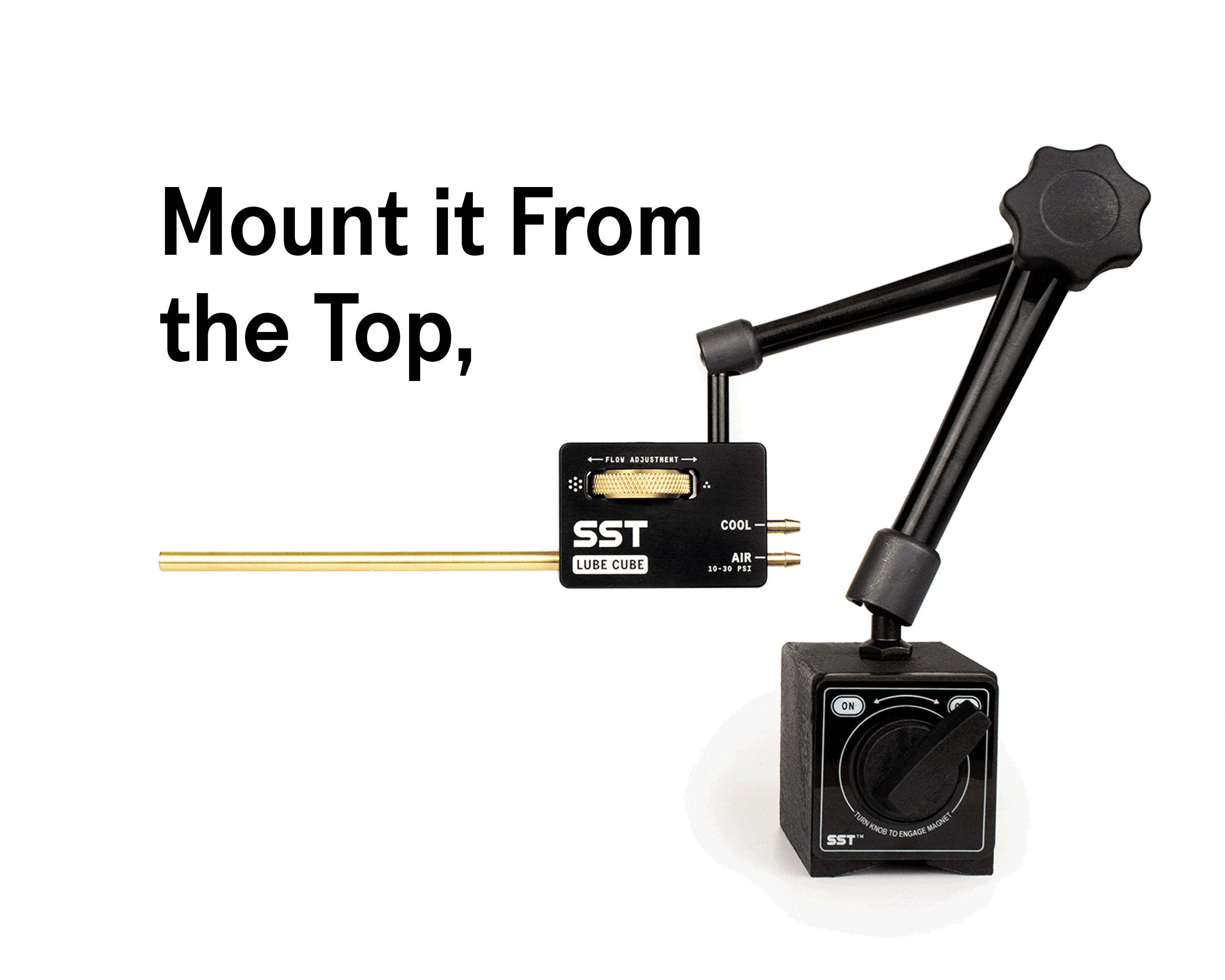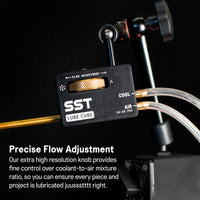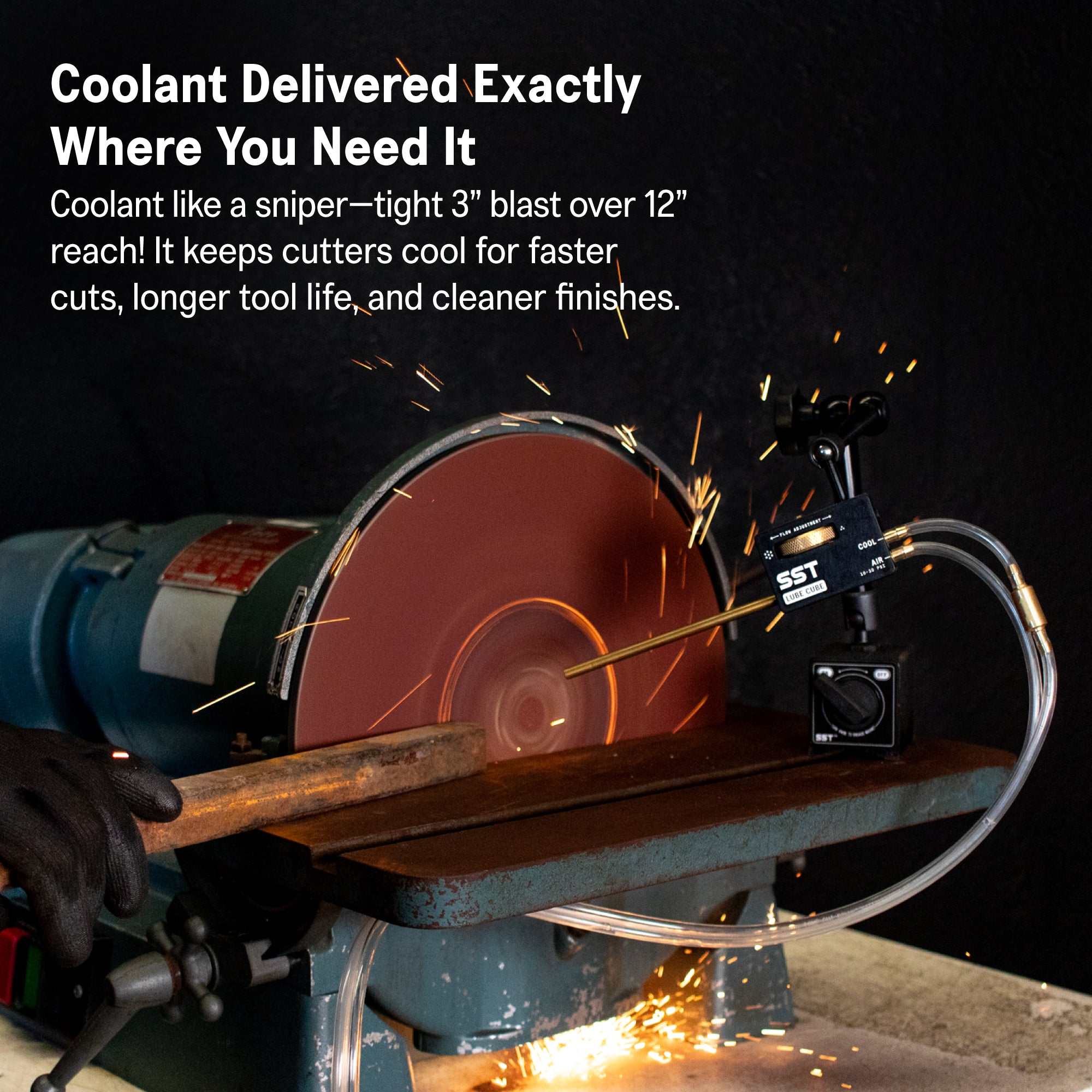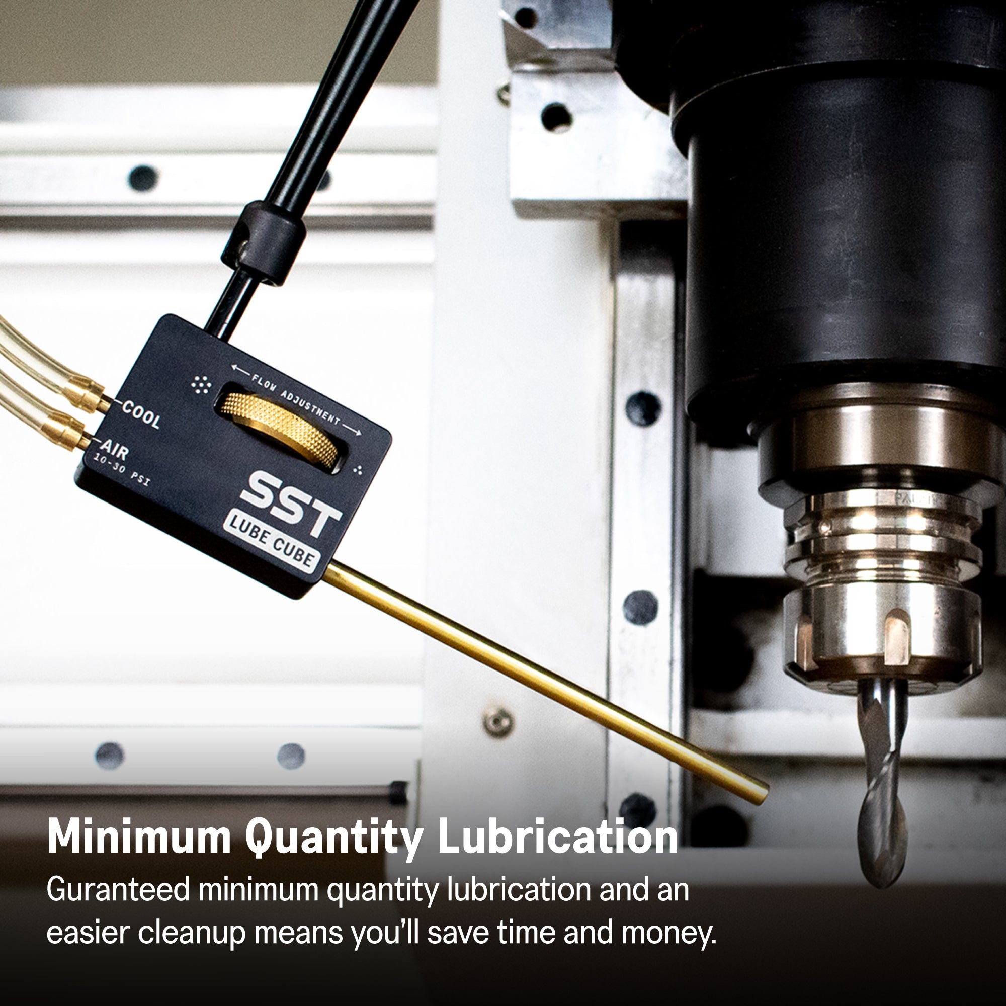 Lube Cube doesn’t atomize your coolant, so it arrive with only 3” spread over a 15” distance.
