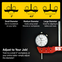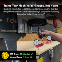 Purchased to tram my X-Carve CNC and worked well for that task. In conjunction with some brass shims I was able to get it calibrated and running great. The build quality is excellent and it was easy to use. Definitely better than my prior 3D printed setup I was trying to use.