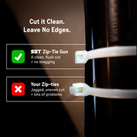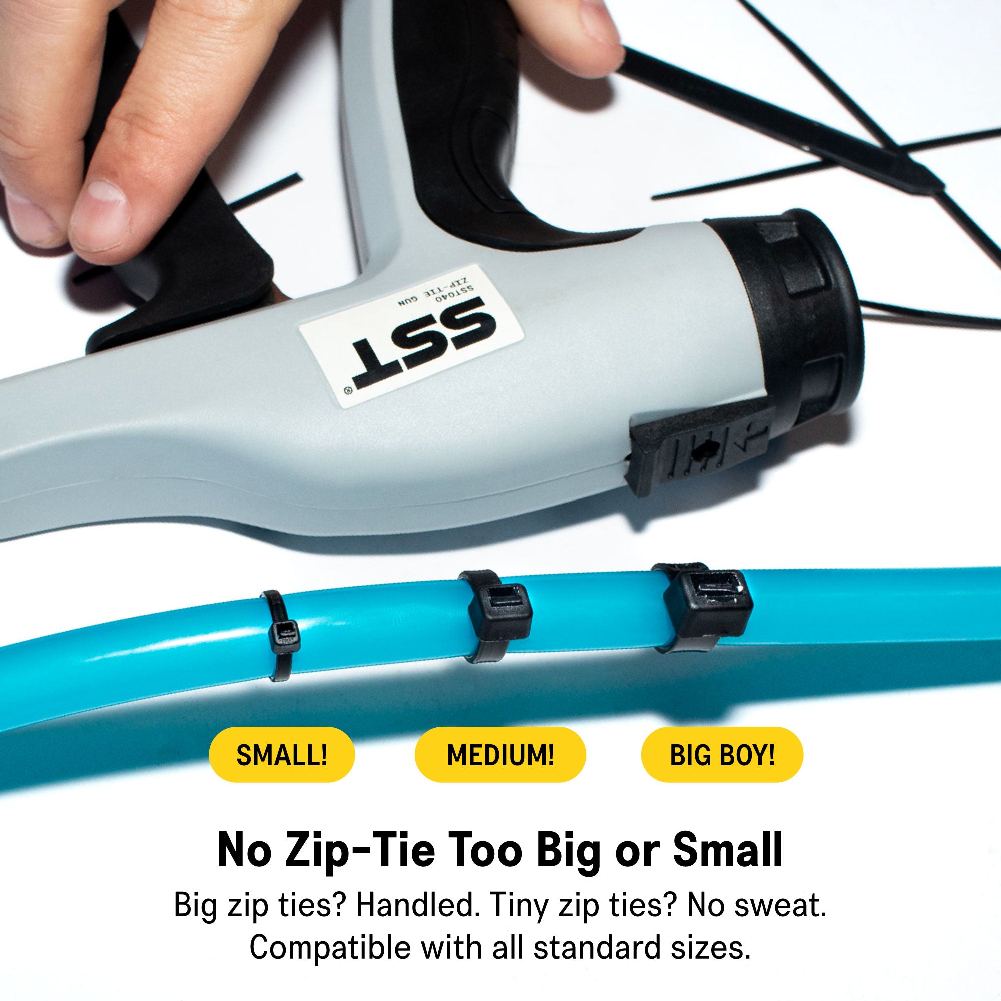 - Big zip ties? Handled. Tiny zip ties? No sweat. Compatible with every size, this tool doesn’t care what you throw at it—it just delivers. All sizes. All types. One gun to rule them all.