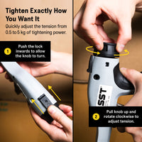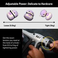 - Get the exact tension you need at the twist of a knob - from 1 kg of finesse or 5 kg of tightening power.